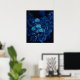 Poster apresenta uma arte floral colorida, plantas de Verão, flores de hydrangea azuis e folhas de rábano em fundo preto. Moderno impressionismo, pintura pastel. © Clipso-Callipso/Julia Khoroshikh www.juliakhoroshikh.art #floralart #hydrangea #hugeleaf #greenery #blackgreen #blueandblack #modernfloral #contemporaryfloral #softpastels #pastelpainting #zazzlemade #poster #wallart
