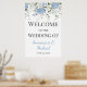 Diga aos seus convidados que estão na função certa! Produtos botânicos de cor aquosa, azuis e brancos, rosas brancas e eucalipto. As fontes são uma mistura de caligrafia manuscrita e moderna. Se você quiser esta design em outros cartazes de casamento, por favor me envie um e-mail para shutterbug600@yahoo.com. Personalize com suas próprias informações.