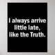 Poster I Always Arrive Late Like The Truth Funny Sarcasti