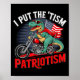 Poster I Put The Tism In Patriotism Motorcycle Dinosaur