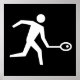 Um ícone do jogador de squash em branco sobre um fundo preto. Esta design parece realmente eficaz nestes Poster