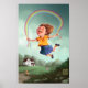 Uma jovem pula de corda feita de um arco-íris nesta ilustração de estilo histórica caprichosa feita pela artista Karyn Lewis. Atrás dela, borboletas voam sobre a grama e parece que uma tempestade de verão acabou de passar. Mas o arco-íris é real? Ou ela pula corda apenas na imaginação?
