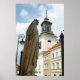 Varsóvia, Polônia: uma estátua fora da Igreja do Espírito Santo. Ao fundo está a Igreja da Rua Hyacinth, na rua Freta, na Cidade Velha.