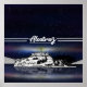 Se quiser ajuda para personalizar este design, use o botão Perguntar a este designer, imediatamente abaixo deste texto. Uma ilustração paisagística da Ilha Alcatraz à noite, sob um céu estrelado. A ilha é desenhada em preto e branco e este céu é um azul profundo. A cena é iluminada pelo farol da prisão