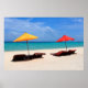 Guardas-chuvas vermelhos e amarelos na ilha tropical de Phi Phi, Tailândia