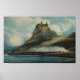Empoleirado sobre uma colina rochosa, o Castelo de Lindisfarne ignora a costa ventosa da Santa Ilha, suas paredes de pedra silhuetadas contra um céu vivo com nuvens e luz em movimento. A paisagem circundante — pântanos, apartamentos das marés e horizontes marítimos distantes — sente-se vasta e exposta, moldada por séculos de vento e água. A atmosfera é solene e majestosa, onde a história se agarra a cada pedra e o isolamento da ilha adiciona um senso de mistério e força silenciosa. É um lugar onde a terra, o mar e o céu convergem numa cena de resistência e presença antiga.