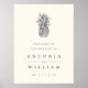 Projetado para coordenar com a nossa coleção de convites para o casamento da Ilha Vintage Pineapple, este elegante design de boas-vindas para o casamento de" e os seus nomes em elegantes letras azuis em um fundo de sondagem quente, tocado por uma ilustração de abacaxi com estilo gravado vintage para um olhar tropical chic.