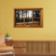 Poster Illusão da Janela de Madeira Faux - Árvores de Pin