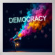 Um poster provocador de pensamentos que ilustra a fragilidade da verdade numa democracia. Uma figura solitária segura uma lanterna, iluminando a palavra "DEMOCRACIA" como ela é ultrapassada por mentiras coloridas e fumegantes que emanam de um grande megafone. Máscaras gigantes flutuam ao fundo, sugerindo o caráter enganador da opinião popular. Esta design serve como um poderoso comentário sobre os desafios de discernir a verdade num sistema susceptível à manipulação e ao conforto de mentiras.
