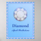 Poster em ilustração digital de um diamante, a pedra de nascença de abril, sobre fundo de gradiente azul-gelo, bordado em um padrão de cristal de diamante