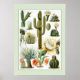 Poster de ilustração científica do cacto de safra. Excelente para o sudoeste da sala de temas. Verduras claras e profundas e matizes de ouro.