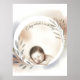 Uma macia ilustração aquosa de um bebê adormecido moldado por uma coroa macia e redonda de folhas delicadas em tons suaves de terra. A design inclui a mensagem sincera "Um pequeno milagre está a caminho", fazer que seja uma escolha perfeita para os anúncios de gravidez, as revistas de maternidade, ou as guardas personalizadas. Personalize facilmente este design ou aplique-o a uma grande variedade de produtos Zazzle usando opções simples de personalização.