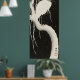 Uma elegante e vintage ilustração de um pássaro de éron empoleirado numa árvore numa noite de inverno nevada. Feito em cores de preto e branco.