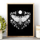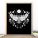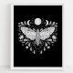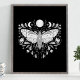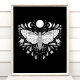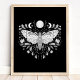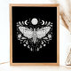 Poster de Ilustração Celestial Abstrato, Negra E Branca Moderna. Este design de abstrato místico mágico apresenta uma bela ilustração intrincada da mariposa com as fases lua de cheio e lua de crescente. Adorado com flores silvestres e floresces florais. Estética feiticeira boêmica.