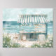 Poster ilustração de aquarela de cena de praia fofa
