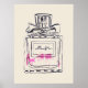 Uma ilustração de moda de uma obra de arte original, da artista Sacha Grossel, de uma garrafa de perfume de perfume rosa. Esta ilustração aquarela de um perfume de marca de luxo está no estilo de pop e a cor de fundo é personalizável.