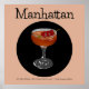 Ilustração de um coquetel Manhattan antiquado com três cerejas.