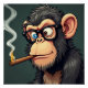 Ilustração de desenho animado de macaco engraçado fumando e vestindo óculos pretos