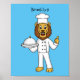 Este leão bonito é um chef e o janto é servido, estilo de desenho animado!