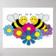 Póster Ilustração de Design de Abelhas e Flores