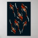 Mão desenhada em abstrato de água, peixes koi nadando design. cor vermelha e azul marinho.