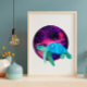 Poster Ilustração de tartaruga de astronauta com aquarela