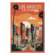 Los Angeles, viagens vintage da Califórnia com palmeiras e arranha-céus, bela ilustração.