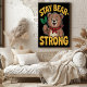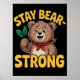 Esta ilustração otimista apresenta um urso alegre segurando um pequeno galho com folhas verdes. O urso está vestindo uma bandana vermelha, acrescentando um toque de charme à sua aparência. O texto "Permaneça Forte" rodeia o urso, criando um tema encorajador e motivacional. O vibrante design capta um senso de resiliência e positividade, perfeito para transmitir uma mensagem de força e perseverança.