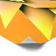 Uma ilustração geométrica estilizada do rosto de um lobo, com ângulos agudos e cores vibrantes. O lobo tem olhos amarelos brilhantes e um fundo gradiente em transição de laranja para amarelo.
