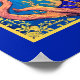 Poster no cartão de tarô "A Rainha das Terras". De pé, na região, em vestes azuis, radiantes sob um halo ouro, ela segura uma varinha, simbolizando poder e criatividade. Cercada por galhos e estrelas ferozes, ela exalta confiança, calor e força espiritual