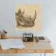 Na moda quadrado de poster com ilustração da cabeça de rinocerontes castanho-vintage sobre fundo claro do que "burlap". O mockup de parede mostra poster quadrado 24x24.