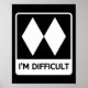 Poster I'm Difficult Funny Double Black Diamonds Ski Snow