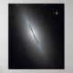 Esta é uma visão única do Telescópio Espacial Hubble da NASA/ESA da galáxia de disco NGC 5866 inclinada quase à nossa linha de visão. A visão afiada de Hubble revela uma faixa de poeira nítida dividindo a galáxia em duas metades. A imagem destaca a estrutura da galáxia: um bojo sutil e avermelhado ao redor de um núcleo brilhante, um disco azul de estrelas que corre paralelo à pista de poeira e um halo exterior transparente. Algumas trilhas de poeira pouco esmaecidas e sábia podem ser vistas se afastando do disco da galáxia para fora do bojo e do halo interior da galáxia. O halo exterior é dotado de numerosos aglomerados gravitacionalmente ligados, de cerca de um milhão de estrelas cada, conhecidos como aglomerados globulares. As galáxias de fundo que estão a milhões ou bilhões de anos-luz mais distantes do NGC 5866 são também vistas através do halo. Crédito: NASA, ESA e The Hubble Heritage Team STScI/AURA)
