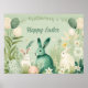 Este poster de saudação de Páscoa apresenta uma ilustração encantadora de aquarela de um coelho de Páscoa giro cercado por flores de primavera. O design lúdico é renderizado em um encantador estilo de arte de linha contra um fundo verde leve e suave, dando a ele um olhar fresco e vibrante. Esta poster é perfeita para enviar desejos calorosos aos entes queridos durante a estação das Páscoas. Este poster é personalizável, você pode editar cada texto ou excluí-lo se preferir escrever manualmente.