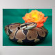 Uma jovem píton de bola saindo de sua "bola" com um rosa cor de laranja e um fundo verde completando a fotografia. Perfeito para amantes de cobra!