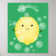 Este limão amarelo giro está nadando em bolhas. Desenhado no adorável estilo de ilustração de desenho animado. Simplesmente doce!