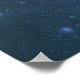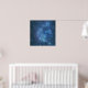 Uma ilustração gráfica do espaço em blues escuros e claros e roxas negras. Representação artística da vastidão do espaço com estrelas, nuvens, nebulosas e galáxias brilhando e iluminando os extremos do espaço com uma atmosfera sonhadora.