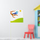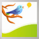 imagem de passarinho nas cores de dois azuis poisando arvore e olhando para o sol