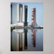 O veículo espacial Apollo de 363 pés de altura (Spacecraft 112/Lunar Module 10/Saturn 510) está a deixar o edifício de montagem do veículo (VAB) para a Pad A, o Complexo de lançamento 39, Centro Espacial Kennedy (KSC). A pilha Saturno V e sua torre de lançamento móvel estão no topo de um transportador de rastreadores. A pilha e o VAB refletem-se no corpo de água em frente ao edifício.