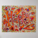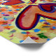 A palavra "Happy" é pintada em uma laranja-claro marigold contra um fundo manchado de arco-íris. Corações de diferentes tamanhos se cruzam e flutuam como borboletas ao redor do texto. Esta pintura também vem numa versão mais brilhante.