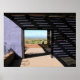 Esta é uma sala colorida ao ar livre de púrpura e violeta. O sol brilhante do deserto deixa fortes sombras diagonais nas paredes que criam padrões interessantes. Os peitos que moldam a porta criam um portal convidando o espectador a sair para a paisagem do deserto que fica na distância além.