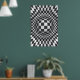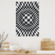 A ilusão óptica de arte em preto branco abstrato personalizada impressão/poster, com um padrão geométrico de marcadores de ilusão óptica B&W de quadrados, retângulos e retângulos que formam um círculo e uma esfera no centro.