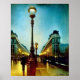 Paris no inverno à noite, pessoas impressionismo com lâmpadas de chuva