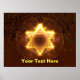 Uma estrela fractal, brilhante, parecida com o fogo de David num fundo avermelhado. Adicione seu próprio texto. No Shema, a oração central do judaísmo, dizemos, "E você amará o Senhor seu Deus com todo seu coração e com toda sua alma e com todo seu poder." Que tal testemunah (confiança, ou fé) queime como fogo no seu coração.