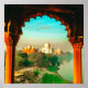 Palácio branco de Taj Mahal, na Índia, com árvores verdes, personalizem-no adicionando um nome ou uma data. Basta adicionar texto e alterar o estilo, o tamanho e a cor da fonte!