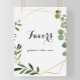 Essa caligrafia geométrica tropical de ouro favorita é perfeita para um simples casamento ou chá de panela. A design apresenta lindas folhas verdes pintadas à mão, enfeitando um quadro geométrico dourado.
