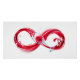 Símbolo infinito do fluxo contínuo de vinho tinto que entra em vidro de vidro sobre fundo branco.