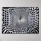 This abstract piece immerses the viewer in a hypnotic tunnel of interwoven geometric shapes, with silver and black tones creating a sense of endless depth and motion. The repeating lines suggest an infinite flow, challenging perception and inviting an immersive visual journey.