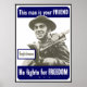Este poster da Segunda Guerra Mundial apresenta um sorridente soldado inglês. Ele declara, "Este homem é seu amigo, Ele luta pela liberdade". Celebre a História Americana, Britânica e WW2 com este produto de poster de guerra vintage restaurado digitalmente da "The War Is Hell Store". Quer mais produtos militares e históricos? Check-out