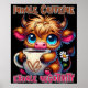 A funny and sarcastic design showcases a cute highland cow with big blue eyes, sitting contentedly in front of a vibrant daisy while holding a steaming cup of black coffee. The cow's soft brown fur adds to its charm. Bright, colorful text reads, "Inhale caffeine, exhale negativity." This delightful design is available on a variety of products, making perfect gifts for coffee enthusiasts.
